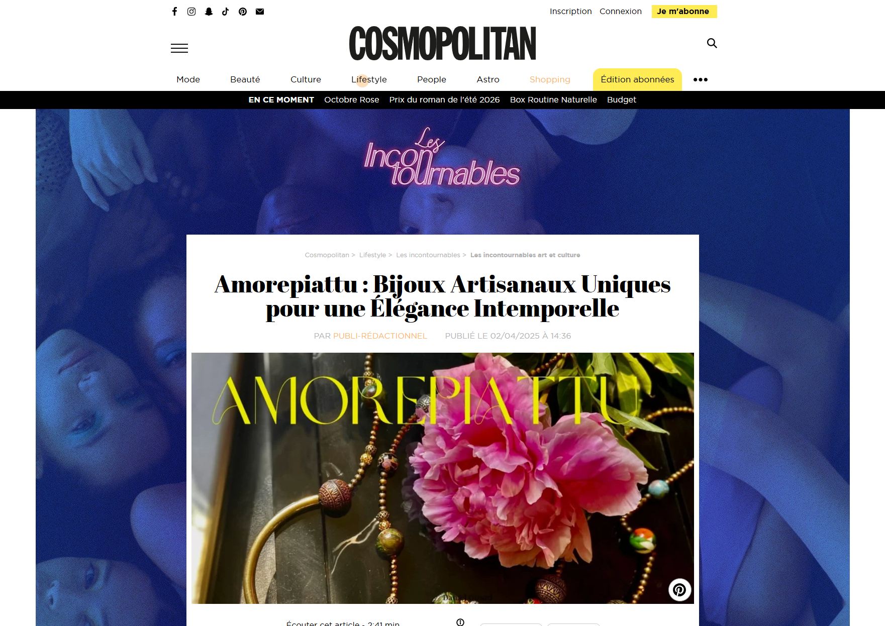 AMOREPIATTU a été mis en lumière dans divers médias pour son expertise en matière de bijoux artisanaux. Découvrez ce que la presse dit de notre marque et explorez nos créations uniques.