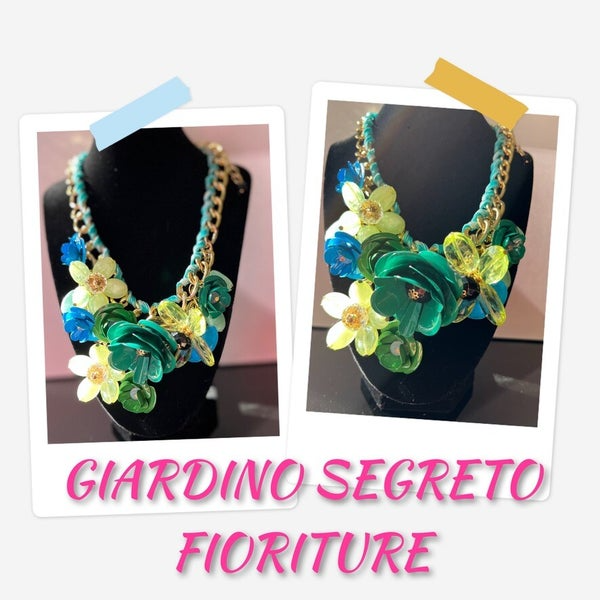 Plongez dans un univers enchanté où la nature éclot en mille reflets. Le collier Giardino Segreto – Fioritura est une célébration florale exubérante, à la fois baroque et lumineuse. Chaque fleur en résine est façonnée à la main comme un joyau botanique, capturant la lumière dans ses pétales translucides et ses cœurs dorés scintillants.