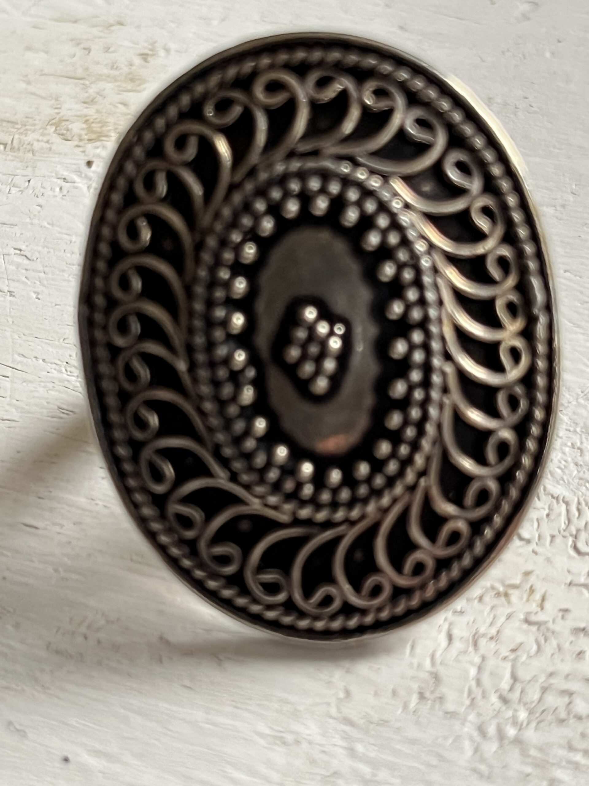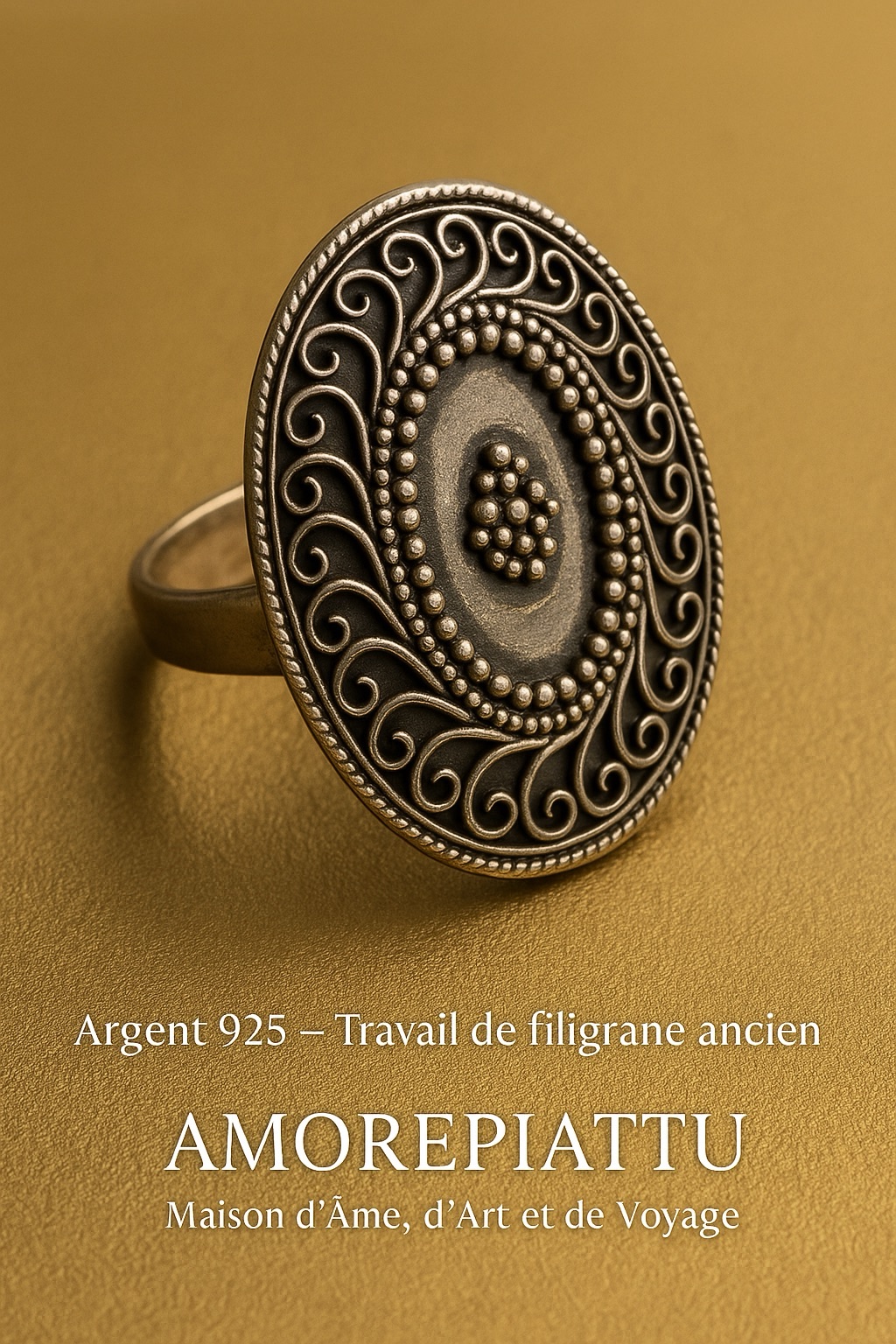 Bague ovale en argent massif filigrané Travail artisanal – inspiration ethnique