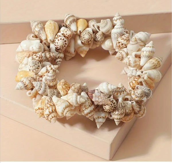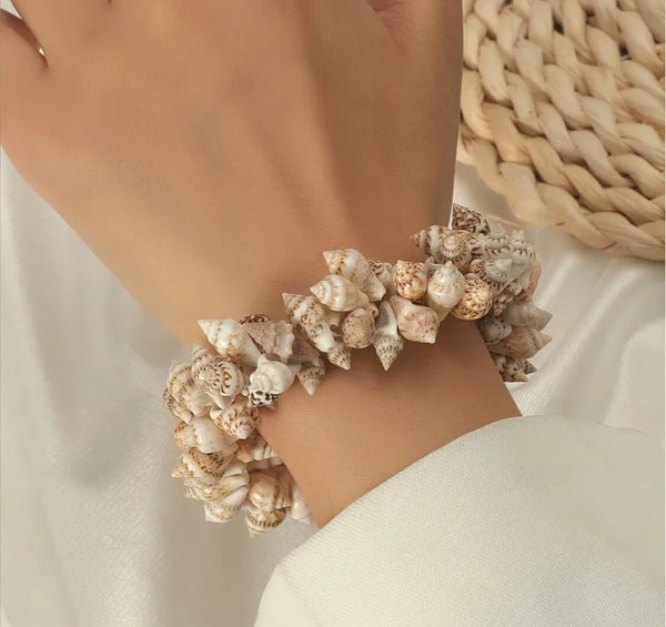 Le bracelet Bora Shell incarne l’essence même de l’été : un souffle d’océan, une poignée de sable, et le chant des coquillages au poignet. Ce bijou est entièrement composé de véritables coquillages naturels montés à la main sur un support souple et solide, créant un effet volumineux et irrésistiblement organique.