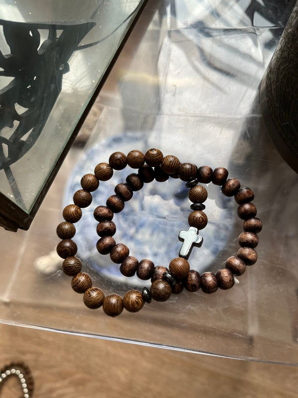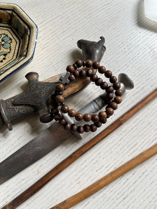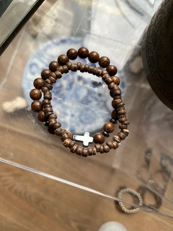 FRATERNITAS est un duo de bracelets en bois naturel, évoquant les traditions partagées et les liens durables.