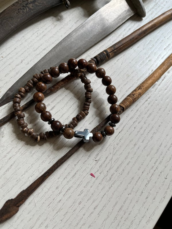 FRATERNITAS est un duo de bracelets en bois naturel, évoquant les traditions partagées et les liens durables.