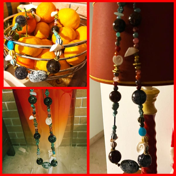 Ce collier unique, issu d’une inspiration spontanée, marie les éléments naturels et célestes à travers des matériaux soigneusement sélectionnés :